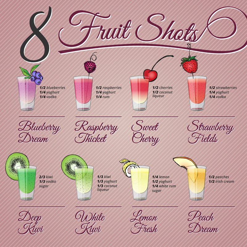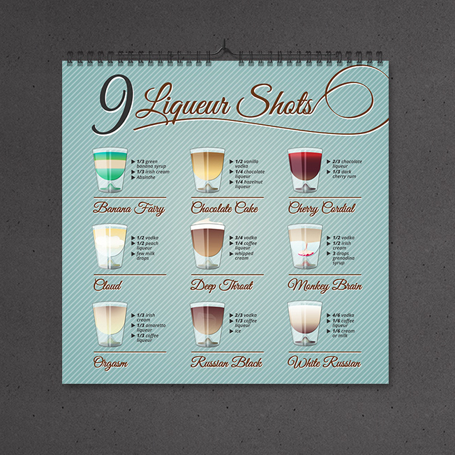 COCKTAILS & SHOTS / recipe posters. Project by Natasza Sałańska & Dawid Żebrowski